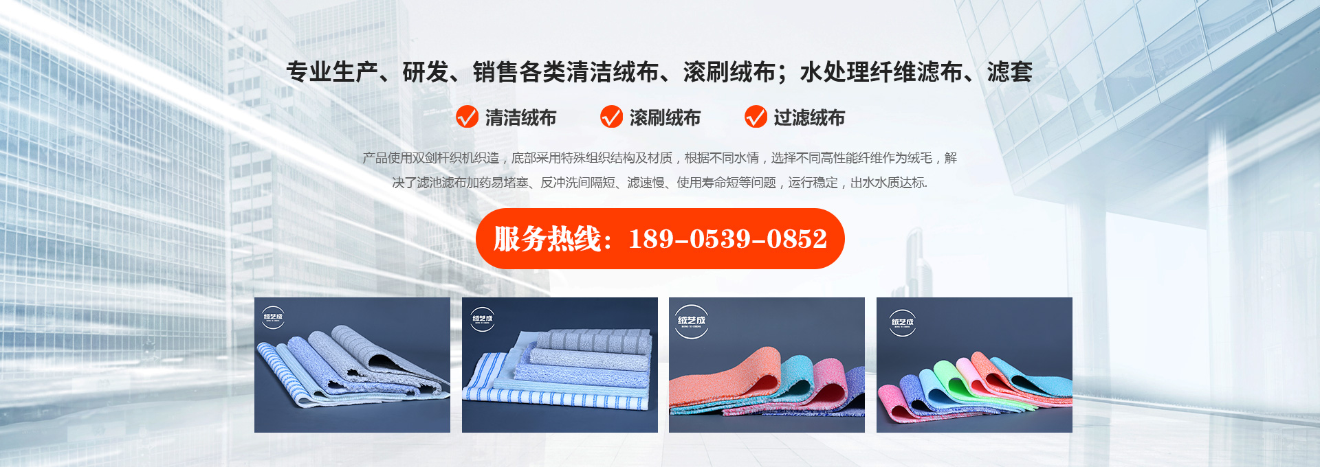 專業生產、研發、銷售各類清潔絨布、滾刷絨布;水處理纖維濾布、濾套